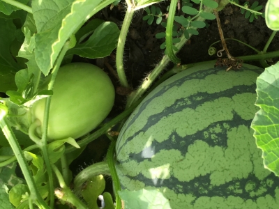 庭やベランダで何か育ててますか? 広い畑 が あるのに・・・・ 太陽の恵み が あるのに・・・・ 費やす時間 が あるのに・・・・・ 生まれました まだ密やか・・・・ 大きいが小玉スイカの芸術 緑の 濃淡 斬新な縞模様 陰をしてくれてるのは アマランサスさん 蔓の 芸術 まとわりながら・・・・・ 光と影のコントラストも素晴らしい まだ 花が・・・ 生命力を感じる その上に ...