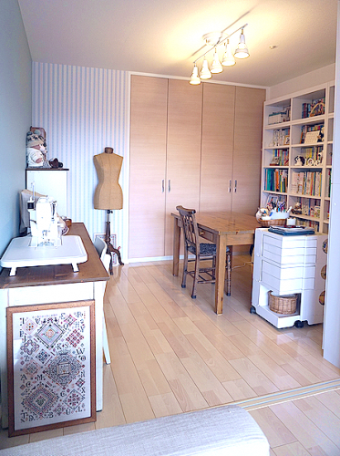 ミシン台と棚の位置を引っ越し当時の配置に戻し テーブルとホビーワゴンの位置も変えてみました。 ホビーワゴンが手前だと 床が奥まで見渡せるので 部屋が広くなったように感じます♪ ここも↓背の高い家具を奥へ移動したので解放感が! 家具を動かしついでに あちこち整理しました↓ ↑透明ボックスに入っている刺繍糸を本棚から移動。 ウェック&木製蓋にも刺繍糸などを入れてるのですが これがなかなか可愛いので もう少し追...