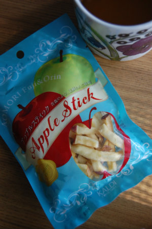 幼稚園・小学校のイベント続きで出ずっぱり。 久々にOFFになったので、近頃のお気に入りをちょこっとご紹介。 カルディで見つけると、ついつい買ってしまうアップルスティック。 サクサクとした食感が病みつきになります。 去年はまってちょくちょく買っていたら、ある日突然店頭で見かけなくなり、 残念に思っていたら、最近復活! シーズン限定商品なのかも。 もう一つのお気に入りは、
