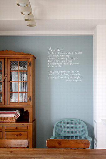 ウォールステッカー [ Rainbow Poem ] お天気に恵まれたシルバーウィークでしたね〜♪ でもせっかくの秋晴れの中 私は風邪をひいて寝込んでしまい 最後の日は薄暗い北向きの寝室で ほぼ1日過ごすことになりました(T-T) あぁ、もったいない・・・ なので予定していた片付けもほとんど進まず どうにか頑張ったのが 夏の布団類を洗濯して片付けて 秋の布団を出してきた事と このウォールステッカーを貼った事だけ。 主人は納戸の片付けが出来るようにと ...