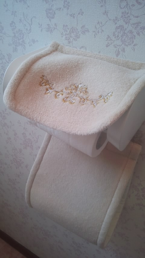 8/26新商品追加♪百貨店やホテル店で販売されたいた上質アイテム新商品も続々投入♪ペーパーホルダーカバー 価格:540円(税込、送料込) ひとつ前の記事でトイレのカフェカーテンを紹介しましたが、 今日はトイレットペーパーホルダーです。 レゾンのベージュとグリーンを購入しました。 下の写真の通り、うちのトイレは一面だけ壁紙がピンクの花柄になっています。 もうひとつのトイレは一面だけグリーンリーフ柄になっているので グリーンのペーパーホルダーをつけています。...