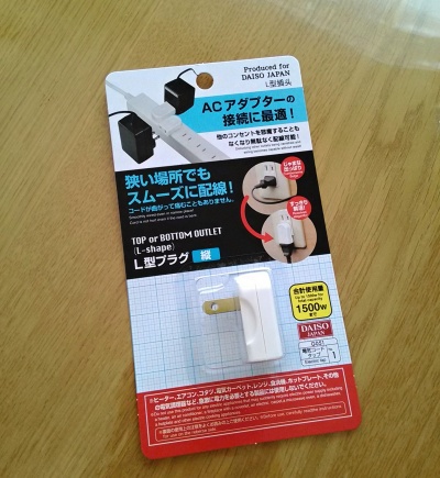 ダイソーでお気に入りのアイテム「L字プラグ」縦バージョン↓ コンセントにさす部分がスッキリするグッズです。 この縦バージョンが結構人気(?)なのか、いつ見に行っても売り切れでやっと入荷してました。 さっそく2個ゲットb(・∇・●) 我家は基本的にこのプラグを先端につけてコンセントにつないでいます。 狭いキッチンで地味に幅を利かせていたコンセントがスッキリして、本当に気にいってます できれば、白だけじゃなくて、黒も作ってほしいなぁ・・・ (´・ω・`) ちなみに横...