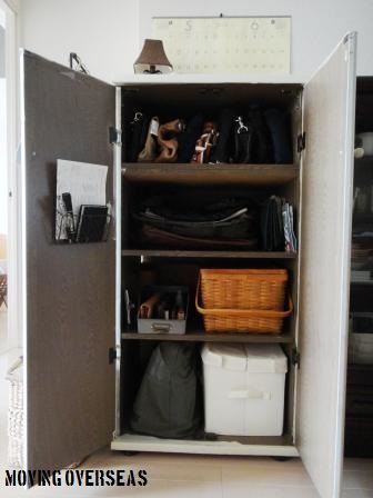半袖を着るようになり、アクセサリーの出番も多い今日この頃。 今までは、引出しの中から毎回毎回取り出していましたが、結構面倒くさい…。 だからって、出しっぱなしは掃除が大変なので、もっとイヤ。。(-.-) そこで… バッグの置いてある、このキャビネットにアクセサリー置き場を作ろうと思います! よく使うものは、これ+小さなイヤリング4つくらい。 では、作業開始です! キャンドゥで買ってきたフックを使います。 テカテカすぎ...