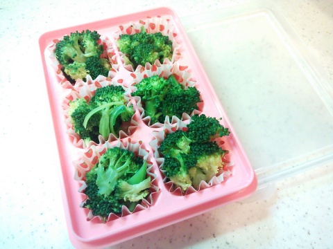 近所の100円ショップでいいもの発見。 お弁当用の冷凍小分けケースです。 6号サイズのカップがちょうどよく入るタイプを買ってみました。 入れたのはブロッコリー↓お弁当にはいつも緑が足りなくなることが多いので貴重なグリーンたちです。 硬めに塩茹でしたブロッコリーたちを、お弁当に入れるときにチーズやあんかけ風のあんを のっけてみたり、シンプルにおかか&ポン酢にしてみたりと使い勝手がよさそう。 最近はやりの何度も使えるシリコンカップも以前は使っていましたが、 あのシリコンカップ・・・地味...