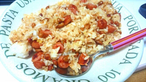 JUGEMテーマ:始めよう!自炊生活!! お給料前ということもあり、お金が無い!! どうしようどうしよう!! ただでさえ、日数少なくて、3月のお給料少なかったのに(。´Д⊂) ウワァァァン! そうだ!自炊しよう!! ………ここんとこずっと相棒居たので、ご飯は外でっていうのが多くて 自炊ほとんどしませんでした。反省ー。 今日は、最近はまってしまった ウィンナー納豆炒飯! ウィンナーと納豆炒めて、ご飯投入。 味付けは納豆についているタレとからし。薄かったらお醤油〜 納豆のねばねば...