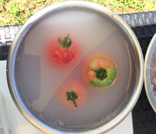JUGEMテーマ:*暮らしの知恵* 野菜は美味しいし、健康のためには野菜は欠かせない食べ物です。 でも、その毎日食べる野菜が汚染されているとしたら・・・ ADパウダー(ホタテ貝殻焼成カルシウム)の溶液に漬けて、10分ほど経過したもの。 なんだか怪しげなものが浮いてきていますね。 分析をしたわけではないので正確なことは分かりませんが、色々調べた結果、農薬ではなく展着剤ではないかと考えています。 無農薬で栽培されたト...