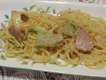 JUGEMテーマ:簡単おシャレクッキング だんだん秋も深まってきましたね。 今日は ちょうど生活クラブ生協で 新しい卵が届いたので カルボナーラにしました。 作り方は、いたって簡単! 2人分です。 1.大なべでパスタ200gを湯がく。 たっぷりめの水でゆがきますが 塩は 水1リットルに対して小さじ1. 葉物の野菜などは パスタよりも5分遅れて投入。 2.ベーコンやハ...