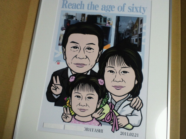●還暦祝い「鈴木ゲンお祝い似顔絵」の贈り物父や母の還暦祝い、還暦記念お祝い会「お祝い贈り物記念似顔絵」仕事着や愛用の仕事道具と一緒に描く還暦衣裳姿の似顔絵。作家/鈴木ゲン作品。「詳しくはHPご覧下さい」JUGEMテーマ:シニア世代の健康生活