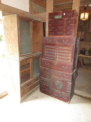 築150年・・・ 古民家の解体現場から出てきた由緒ある子箪笥 やはり・・・ 普通の古民家から出てくるタンスとは 装飾金物が違いますね! 左にあるのは・・・ 総ケヤキ作りの本棚ですが、その重さ。。 明治の頃のガラスが特徴です。 出てきたままで・・・ 掃除もしてないので、少々色目がイマイチなのですが 綺麗にお手入れすれば見違えるようになると。。 そして・・・ たくさんのファンがいらっしゃる「リケジョ様」御用達 理科室で見たことのあるフラスコやビーカーなども た...