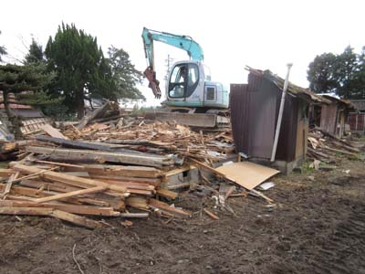 かねてより・・・ 土地450坪の敷地に建つ180年古民家を 500万円で売りたい!と依頼され、7〜8組のお客様を ご案内しましたが、いづれも商談になりませんでした。 所有者さんは・・・ 関西方面に住まわれているので利用されることは無く 仕方なしに『解体』と言う方針になりました。 いままで・・・ 使われていた梁などの古材を買わせて戴いていましたが 置き場が無くなり、今後は購入できなくなりました。 やむなく・・・ 解体と言う道を選ぶほかにありませんでした。 5mほど...