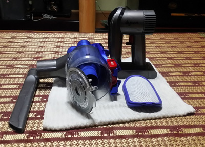 JUGEMテーマ:私の整理術。収納術。おそうじ術 コードレスなのに驚きの吸引力。 ダイソンのハンディクリーナーDC31のフィルター掃除をやりました。機械の部分を外して、プラスチックの部分は水洗いでジャブジャブ。この掃除機を買ってかなり経ちますが初めてのお手入れです。水洗いすれば機器にこびりついている埃もとれてかなり綺麗になりました。