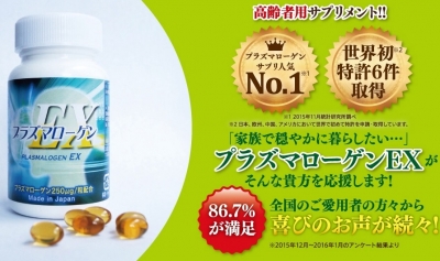 Mテーマ:認知ケ JUGEMテー うっかり、ぼんやりが多くなった高齢者の方 ご家族の介護にお悩みに方へ 高齢者認知ケアサプリメント 【プラズマローゲンEX】 L 65才以上の高齢者の7人に1人は認知症と言われ、 日本社会の高齢化が進むにつれて認知症予防・認知症対策は避けられない問題です。 そんな中、高齢者のいるご家庭で手軽な認知症対策になるのでは? と注目されているのが、TBS「夢の扉+」で放送されて話題となっ...