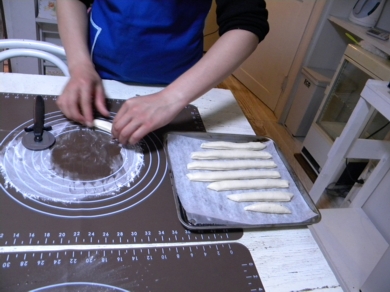 5月27日(日曜日)のおうちパンレッスン 女性二人が姉妹で、妹さんのご主人もご一緒に。 みんなでミルクスティックのレッスンです。 ペストリーボードを「買おうかな?」といろいろ物色検討中の妹さん。 なので、コットンチューリップでわたしが使っているペストリーボードを ご参考になるかしら、と出してみた。 向こう右奥がcottaのオリジナル木製のペストリーボード。 対角の茶色いのはいつもレッスンで使っている ホームベーカリー倶楽部のシリコンマット ...
