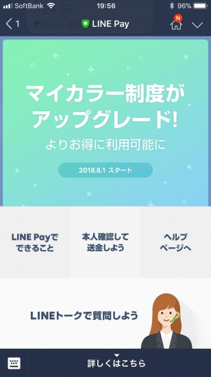 JUGEMテーマ:クレジットカード 以前紹介した「世の中の全てを2%引きにする」LINE PAYのポイント 還元スキームが2018年6月1日から変更になるようです。 新たに始まる「マイカラー」では2%還元の仕組みこそ残るものの、 従来の一律2%還元から、使用状況によって0%〜2%(最大)までの 4段階でのポイント還元に変更されると説明されています。