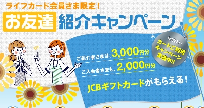ポイント還元率の高さで人気のライフカードがお友達紹介キャンペーンをやってます。 ココにかぎらず、たまにこんな紹介キャンペーンやってることがあるので作りたいカード会社があるならちょくちょくチェックしておくといいですよ(・∀・)b JUGEMテーマ:クレジットカード