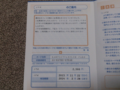 貯まったJデポをインターコムから換金すると、しばらくしてからハガキが届きます。 ハガキに書かれている金額と有効期間を確認しておきましょう。 交換申請してから、実際に値引きされるまで、少々時間がかかります。 有効期間をチェックしておかないと、使わずに終わってしまうという失敗をしかねませんし、ちょっとまとまったJデポを換金した場合は、買い物をするタイミングを気をつけないと、うまく値引き対象にならないことになります。 Jデポ分の値引き対象は、ショッピングに限られるようなので、私の場合は、毎月のnana...