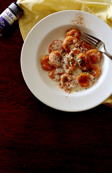 ●パン工房● 〈HAPPYハロウィン・・バターナッツのニョッキ♪〉 先日、ブログ友達の”ひよこまめ”ちゃん家で、美味しそうなニョッキを拝見し(^^サンキュです) 無性に食べたくなり、Timingよろしく頂き物のバターナッツ(有難う^^)で♪ 今回は、玉子なし、捏ねてもちもちニョッキ♪ (玉子ありのふんわりニョッキのレシピはこちら→☆) しかし芸がない、去年もニョッキだったんだね・・・・・。 バターナッツ南瓜のニョッキ(たっぷり1人分)♪ ...