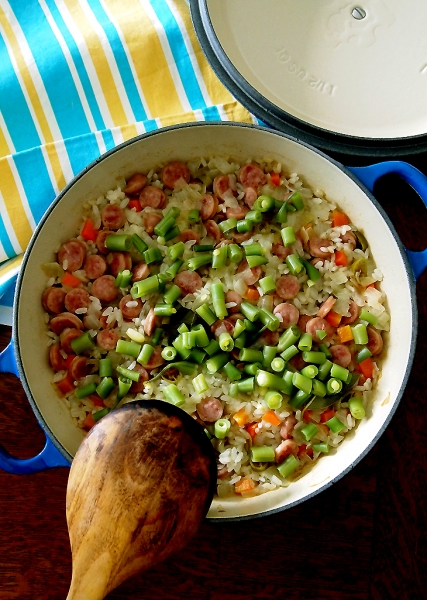 ●今日のごはん● 〈エスニックアレンジ・・簡単グリーンカレーパエリア♪〉 家にあるもので作るいつもの簡単パエリアが、これ1本でおご馳走に変身♪ お家で簡単にエスニック料理が楽しめるなんて!凄い(^^ 休日ごはんにぴったりです(^^ 簡単!グリーンカレーパエリア(およそ2人分/22センチキャセロール使用)♪ お米1合 オリーブオイル大さじ3 ソーセージ100g 玉ねぎ70g 人参20g 茹でインゲン40g にんにく1かけ(3g) 青唐辛子1本(5g) 白ワイン...