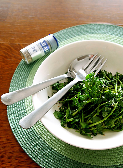 ●今日の1品●〈春・・スパイスとクレソン&失敗山食にゃ♪〉毎年この季節楽しみにしている、大好きなクレソン♪サラダで食べたり、ポタージュだったり、サンドイッチに挟んだり・・etc。あの独特な苦味?辛味?が大好き♪塩でシンプルに食べるのが我が家の定番(^^今回は上質なオリーブオイルと、フレッシュな香の白胡椒ホールでシンプルな1皿に♪♪スライスにんにくを加えても美味しい♪クレソンのさっと炒め(およそ3人分)♪クレソン(柔らかい部分のみ)100gオリーブオイル大さじ2と半分白ワイン大さじ1塩2つまみ白胡椒(ホール)13粒...
