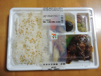 JUGEMテーマ:おうちご飯 セブンイレブン おまかせ御膳 酢豚です。 以前食べてとても美味しかった、「ふんわり厚焼き玉子の赤飯弁当」と同じシリーズ的な感じだったのでこれにしました。 こんな感じ 酢豚がテカテカ黒光りして食欲をそそるいい色しています。 やはり見た目通り酢豚はコクがあり濃い目の味付けが白いご飯によく合います。 他の煮物系のおかずなど、前回食べた「ふんわり厚焼き玉子の赤飯弁当」と同じ上品でしっかりとした味付けはサイコーでした。 全体的にバランスが取れていて食が進むと...