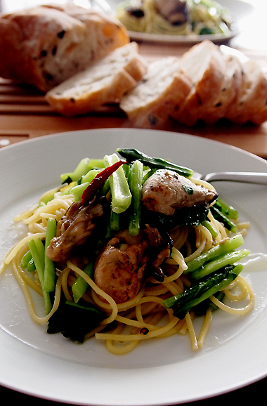●今日のごはん●<牡蠣の燻製オイル漬け・・まずはパスタで堪能&嬉しいこと♪>厳選された広島の牡蠣を、職人さんが6日間かけて丁寧に作られた1品。ぷりぷりの牡蠣、ほのかな燻製香、そしてまろやかなオリーブオイル・・美味しいです♪グラタンに洋風茶碗蒸し、根菜とオーブン焼き・・etc。頭の中で美味しい悲鳴(^^でもまずはパスタ!シンプルに、アーリオ・オリオ・ペペロンチーノ♪♪牡蠣の燻製と蕪の葉のアーリオ・オリオ・ペペロンチーノ♪(2人分)パスタ麺200g蕪の葉2株分煙にまかれて(牡蠣の燻製オイル漬け)2パック鷹の爪3...