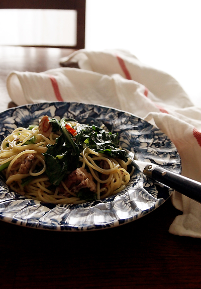 ●パン工房●<蕪の葉と鯖のオイル漬け・・パスタ&あんぱん&嬉しいことにゃ♪>蕪、葉がいっぱいついているものを見かけるとしめしめと思います。細かくカットして塩もみし炒めておにぎりの具にしたりお漬物に、チキンハンバーグの具材や、こうしてパスタにも♪大地の恵みですね♪蕪の葉と鯖のオイル漬けパスタ♪(1人分)パスタ80g蕪の葉50g鯖のオリーブオイル漬け(HOKO・缶詰め)90g具沢山食べるオリーブオイル(HOKO・瓶詰め)小さじ1茹で汁お玉2分の1程度塩適量にんにく半かけ黒胡椒・黒七味・鷹の爪少々。パスタはたっぷ...