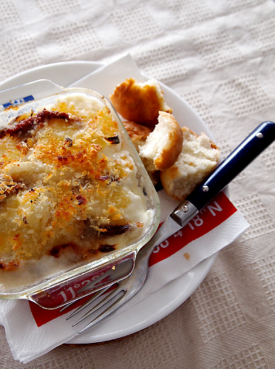 ●パン工房●<ヤンソンさんの誘惑とプチパン&仲間入り&鳥さんにゃ♪>ヤンソンさんの誘惑。スウェーデンの伝統料理、定番中の定番で、クリスマスに食べられるそうです。久しぶりに食べたくなって・・・♪今日はブログ友達のmogちゃんのつくれぽで♪ヤンソンさんの誘惑♪(1人分)ジャガイモ(中くらいの大きさ)2個玉ねぎ(やや小ぶりの物)2分の1個アンチョビ2枚生クリーム100mlアンチョビオイル少々バター少々パン粉少々。ジャガイモは皮をむき、薄くスライスし、少し水に晒し、笊に揚げます。たまねぎも薄くスライス。耐熱容器に入...