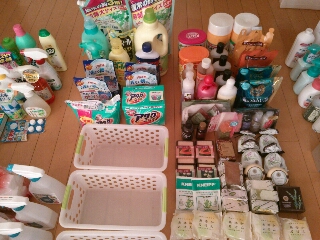 JUGEMテーマ:今日の断捨離 JUGEMテーマ:家事・掃除・片付けがんばろう〜♪ 旦那と子供が起きてくる前に、昨日の続き。 浴室関係(右のかたまり) 減らす前。 減らしたあと。 香り目当てで石鹸を買ったり貰ったりした時期があったせいで、すごい数の石鹸が出てきました! 石鹸以外もにおいのあるものばっかり…ベリー、ローズ、レモングラス、パパイヤ、ジャスミン、ローズマリー、ムスク、はちみつ、パッションフルーツ、りんご、ユーカリあとなんかいろいろ。 朝から全部くんくん嗅いで、大好きな香りのも...