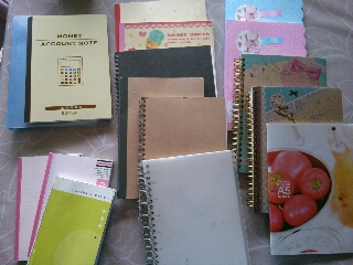 JUGEMテーマ:今日の断捨離 JUGEMテーマ:家事・掃除・片付けがんばろう〜♪ 4カテゴリに分けました。 1: 使用目的が決まっているもの。 住所録と、金銭出納帳。 2 : 使用済みノート。 中に何が書いてあるかはおいといて、とにかく使ってあるもの。 3 : 新品。 4 : メモサイズのノート。 これからこれを、減らします!!