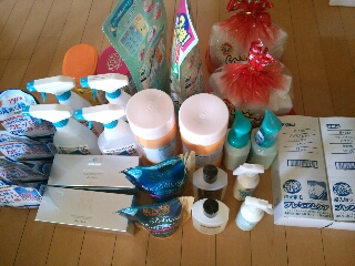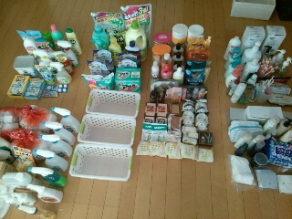 JUGEMテーマ:今日の断捨離 JUGEMテーマ:家事・掃除・片付けがんばろう〜♪ ごちゃごちゃしたままだと頭が混乱してしまって全然仕分けが進まないので、ジャンル分け。 ↑分けてみると、すごい眺め。 ↑洗面所 ↑美容関係。つまり、全部私の。 ↑右は、浴室関係、左はお洗濯関係。 ↑台所関係の消耗品。 ↑お掃除用品いろいろ。 さ〜。 気合い入れて減らそうっと。