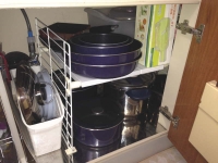 時間と作業と空間の節約を図る家事のパターン化。 読者の皆様にとっては、パターン化というより ちょっとマンネリ化を感じつつあるかもしれませんが(苦笑)、 今しばらくお付き合いいただければ幸いです。 鍋はシンク下、フライパンとフタはコンロ下に収納するのが基本です。 鍋はシンクで水を汲んでから火にかけるのでシンク下。 フライパンは直接、火にかけるのでコンロ下。 フタは調理中に使用するのでコンロ下。 またフライパンとフタは薄いもの同士、収納しやすいので一緒にする。 これが理想的な基本の収納方...