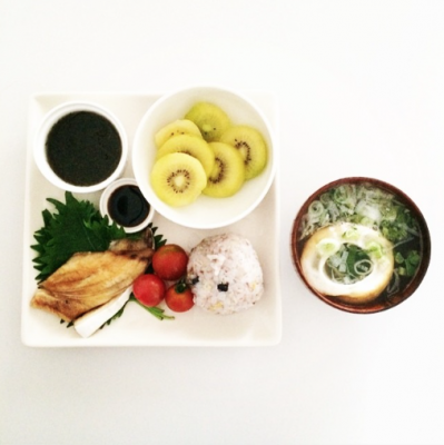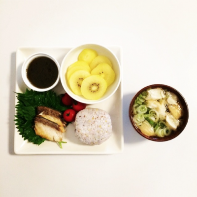 朝食 こんにゃく雑穀米100g 127kcal 油揚げと小松菜のみそ汁 63kcal 焼き魚かんぱち35g 45kcal ミニトマト 10kcal もずく酢 6kcal キウイ131g 73kcal (324kcal) 昼食 キムチ80g 39kcal 木綿豆腐100g 72kcal きゅうり1本 12kcal (123kcal) 夕食 フランスパン40g 112kcal パウンドケーキ 107kcal かぼちゃのポタージュ 154kcal 調製豆...