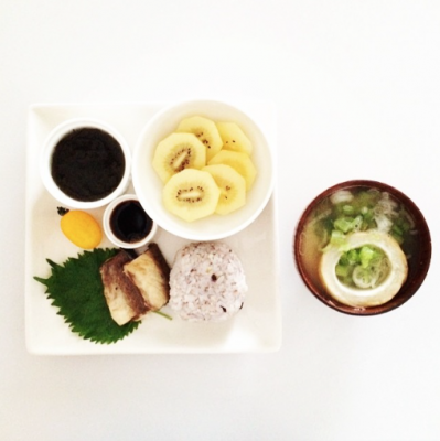 朝食 こんにゃく雑穀米100g 127kcal 油揚げと小松菜のみそ汁 63kcal 焼き魚かんぱち35g 45kcal ミニトマト 10kcal もずく酢 6kcal キウイ131g 73kcal (324kcal) 昼食 キムチ80g 39kcal 木綿豆腐100g 72kcal きゅうり1本 12kcal (123kcal) 夕食 フランスパン40g 112kcal パウン...