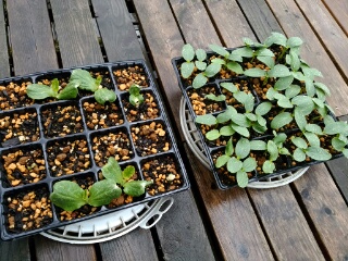 20日。 ズッキーニとキュウリ。 キュウリは間引いた。 エダマメ。 娘の自由研究なので そろっと植付のプランを立てないと。 これが厄介だ・・・。 昨日はズッキーニの追加蒔き。 発芽率が悪いので 強気でいく。 フィレンツェを鉢上げ。 根の張りは良くなかったが まずまずの出来。 屋外で育苗したいが この時期、風に揺さぶられまくって大変なことを 知っている。 根がしっかり張るまで、しばらくは屋内で。 まった...