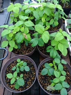 今朝のプランターエダマメ。 本葉は5、6枚。 胚軸切断のものも順調。 白鳥の第3弾を定植。 畑はもう植え付けるスペースがない。 娘の自由研究用(?)畑のエダマメ。 虫に食べられて無い箇所も。 こちらは胚軸切断。 スナック豌豆とパクチー。 パクチーは間引き。 若いので柔らかい。 JUGEMテーマ:家庭菜園