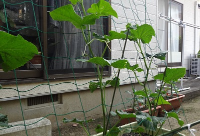 JUGEMテーマ:家庭菜園 ナスもサツマイモも・・・ そして,キュウリも生長の兆しが見えてきました。 ここ数年,南側の窓下にキュウリをはわせて,グリーンカーテンのつもり。 昨年は,グリーンカーテンが必要なときには,もうキュウリの葉は茶色に・・・ 今年はどうかなあ。 タイミングよくグリーンカーテンになりますように,と思っていたら。 孫のAちゃんがキュウリの収穫をしている動画が送られてきました。 大人用の手袋をして,ずいぶん大きなキュウリを切っ...