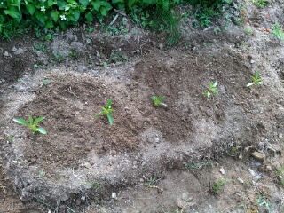 胚軸切断挿木のエダマメ。 切断から約2週間。 4本をプランターへ。 その他は畑へ。 こちらは6本。 初旬に蒔いた第2弾のエダマメを 畑に定植。 2箇所に。 チャードを定植。 4株。 春菊を植えたのだが モノの見事に虫に食べられ 1本しか残っていない。 食べられて空いたスペースに。 チャードは緑、黄、赤とカラフルだが 緑色はただのクサっぽくてありがたみが無いため 黄と赤を...