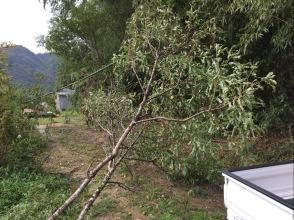 JUGEMテーマ:家庭菜園 さあ 今日は 日曜日ということで 秋冬野菜の植え付けを行うために 上八万町の畑へ 早朝6時だというのに うちの畑が いやに暗い あれ? そして 向こうが 見えない。 おかしいと 軽トラを止めて 畑の中に 入っていきますと ギャーーーーー!(゜o゜; 木造2階建の建物の高さまで育った しだれ桜が 先日の台風でなぎ倒されて ななめに横たわり おとなりさんの竹林の山に 倒れて おおい...