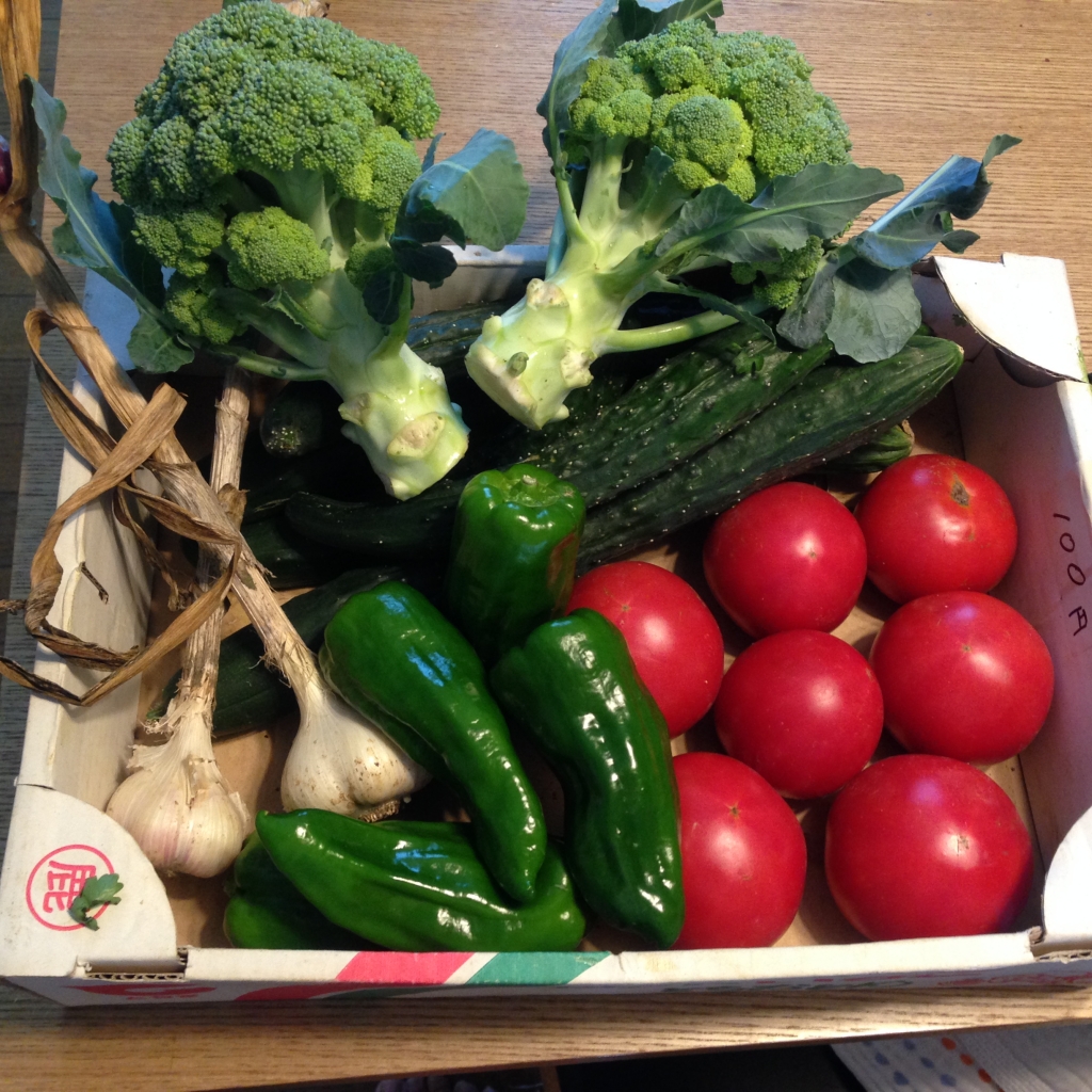 JUGEMテーマ:家庭菜園 日曜日は大きい方の畑で共同作業です。自分の個人圃場ではまだ収穫できるものができていないので、畑のお仲間から購入しました。 にんにく、ピーマン、トマト、きゅうり、ブロッコリー、すべて北海道産。 あと、らっきょう らっきょうの甘酢漬けなど、作った事がないので、今週チャレンジします! さらに、いただきもの パクチーとジャガイモ、きゅうりです。 このきゅうりは通常の2倍ぐらいにジャンボになってしまったも...