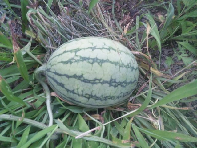JUGEMテーマ:家庭菜園 開墾した畑にスイカの苗を植えました。 害虫に悩みながらも順調に育ち、最近実を結びました。 全部で7つ。 でもまだ拳2個分の大きさなので・・・ 日々愛情を注いでます。 「早く大きくなぁれ。」 子供達も応援中です。