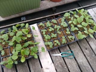 JUGEMテーマ:家庭菜園 6月になってもう、梅雨入りしたと思ってたら雨が少なくてこまりものです。おなす、トマトの定植を追加しました。水やりが充分必要なおなすは梅雨の植え替えが適しています。 スイカの種をまきました。1日頃まいて、まだ出ませんね。 最初にうえたおなすはもう、2個なりました。脇芽の剪定をしました。 トマトは脇芽がいっぱい出ますが全部取ります。ぼくは手でとります。 ピーマンを定植しましたが、早すぎたようで、5本のうち、2本が葉をいっぱいなくしました。 ジャガ芋が枯...