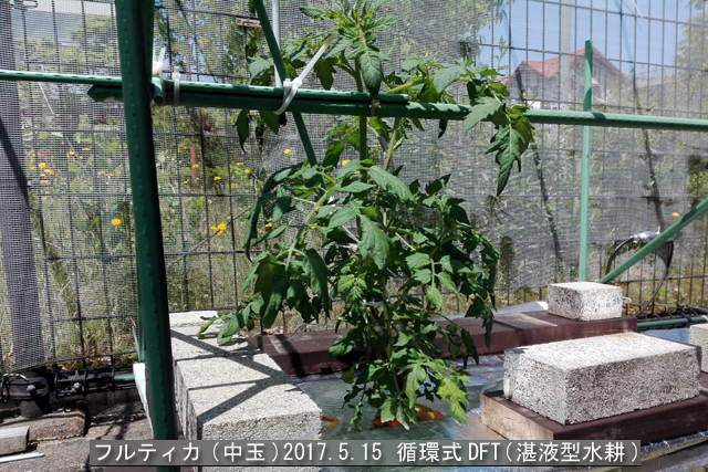JUGEMテーマ:家庭菜園 4月30日に購入苗をセット、約2週間経ちました。 今年はいろいろと忙しくてギリギリまで悩んだんですが、GW中に立ち寄ったホムセンでついつい購入。 とはいえ、ホントに手をかけてやれる時間がないのでこの1株のみ!! 完全自動給水なので週に1度程度の液肥投入でフルティカが1000個くらい収穫できたらいいな〜(笑) 2015年に【1シーズンもてばヨシ】と100均の園芸支柱で作ったトマト棚は意外と風雨に耐えてくれて、 今シーズンは劣化した結束バンド...