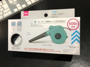 昼間、雪がパラついた、@おざさです。 ということで。 午前中、生活必需品の購入で外出した時に ダイソーさんに立ち寄って 巷でウワサになっていた「USBブロワー」を購入。 500円+税です。100円ではありません。 中身は本体と黒いノズルが分割されて入っていました。 コードは1.5mあります。 本体のカラーは白・グリーン・黒の3色あります。 立ち寄った店舗には白しかありませんでした。 ノズルを刺し込んで完成。 本体の全長は16cm。ちっちゃいですw。 普通のブロワー...