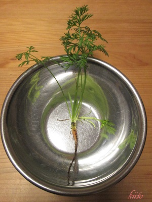 JUGEMテーマ:プランター・ベランダ菜園 9月の終わりに蒔いた人参。 わさわさと葉が茂っています。 って、間引かないと! と思いつつ、葉っぱ好きなわたし。 ついつい伸び放題にしていました (^^; でも、いくらなんでも もう間引かないといけません! このぐらいだと まだふわふわと、とっても柔らかいです。 お味は、パセリのようです。 パスタに入れてみました。 ほんのり香る人参の葉...