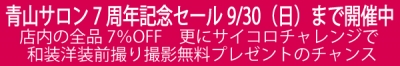 JUGEMテーマ:結婚・新婚(準備中) 大人ウェディング.com青山サロン、 おかげさまで昨日9/25に7周年を迎えました。 感謝の気持ちを込めて、ちょっとだけですが 9/30(日)までセールを開催しています。 ドレスでも、タキシードでも、お母様のドレスでも 店内全て7%OFFです。 前撮りロケフォト付き衣装レンタルプランも、 当然セール対象となります。 金、土、日は予約不要でどなたでも...