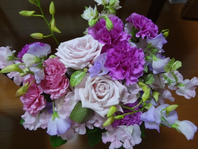 バラ・カーネーション・スイトピーなどを使用した花束が届きました 押し花額の完成です (TYPE・B パールピンク×ホワイト) 〜ランキングに参加しています〜 ↓ポチっと↓ ブライダル・結婚 ☆ ブライダルブーケ ☆ ウエディングブーケ &...