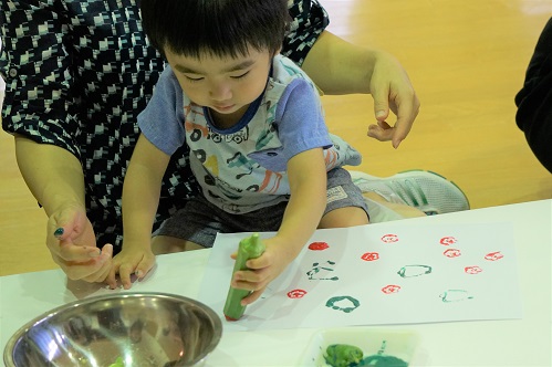 JUGEMテーマ:子育て 今日のカンガルークラブは 『ぺたぺたスタンプ遊びをしよう』でした。 夏の野菜 オクラ、ピーマン、きゅうり、じゃがいもを スタンプにして遊びました。 白い大きなお皿に野菜をぺたぺたしましょう。 オクラをぺたぺたすると お星様の形になるね。 じゃがいもはどんな形になるかな? ピーマンはおもしろい形だね。 いろんな色でぺたぺたし...