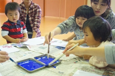 JUGEMテーマ:子育て 昨日の未就園児の親子登園「カンガルークラブ」の様子です。 昨日のカンガルークラブでは【10・11月誕生会】を行いました。 誕生月のお友だちには誕生カードのプレゼントや誕生日の歌を 歌いました。 そして、誕生会記念の手形・足形アート。 今回は手形で【魚】を作りました。 絵筆を使い、青とピンクの絵の具を手に塗り、お家の方と ペッタン。 手形をとります。 「ママが手にぬりぬりするからね。」 ...