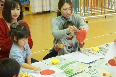 JUGEMテーマ:子育て 今日の未就園児の親子登園「カンガルークラブ」の 様子をお伝えします。 今日の「カンガルークラブ」では【カレンダーを作ろう】 という事で、来年のカレンダーを作りました。 縁起物の『だるま』に来年の干支の『戌』を合わせた 『戌だるま』にしました。 『だるま』になるケント紙をのりで貼り、その上に顔や模様 いぬの耳をつけていきました。 『戌だるま』のまわりには四季の景色スタンプを貼り 華やかさを出します。 ...