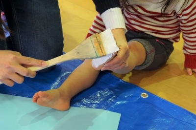 JUGEMテーマ:子育て 今日の未就園児の親子登園「カンガルークラブ」の 様子をお伝えします。 今日は【12・1月誕生会】という事で、身体測定をしたり、 【手形・足形アート】を行いました。 今回の【手形・足形アート】は足形を使って 雪だるまを作りました。 お家の方に大きなハケでお子様の足を白の絵の具で 真っ白に塗って頂き...。 「くすぐったいよーーーー!!」 「ぬりぬりするから待ってってね」 ...